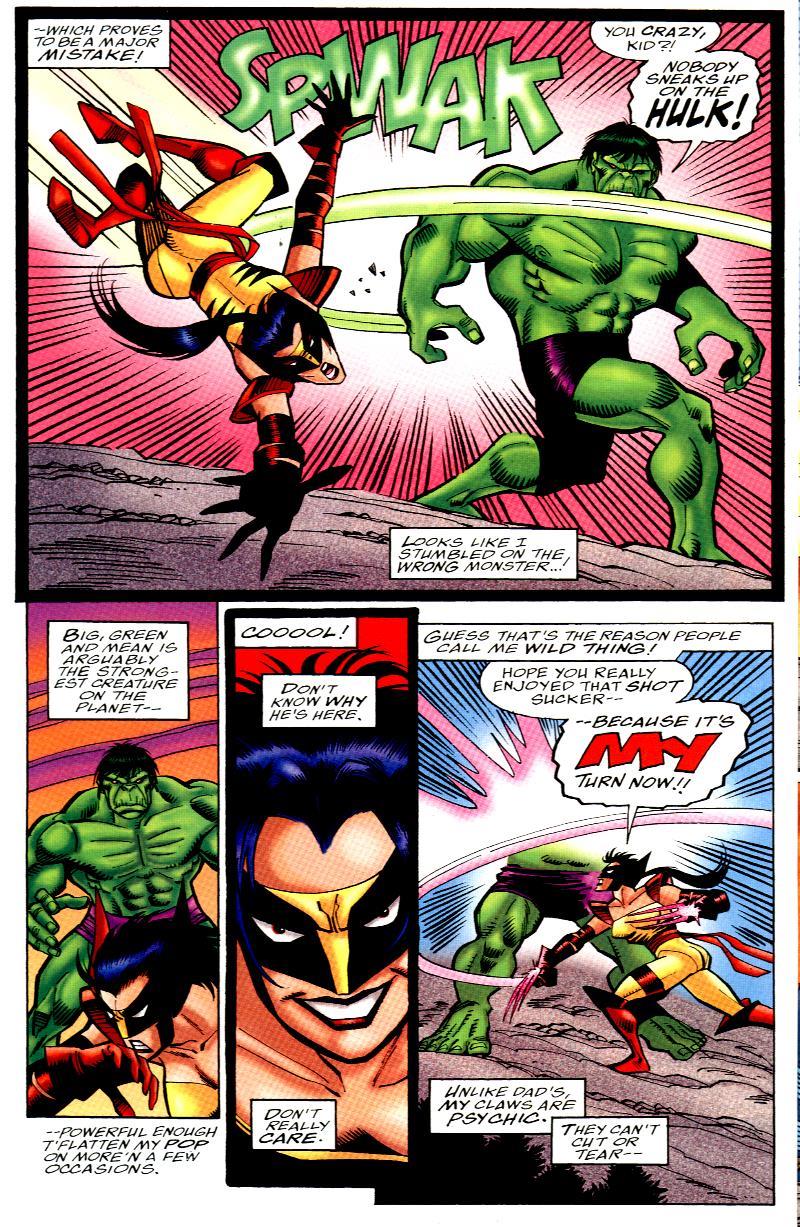 Larry Hama does the writing on the ongoing series, and he brings a charm that I think DeFalco could not match in his #0 issue. Hama inverts the entire “uncool” teen thing, by having the so-called “cool girl” constantly attempt to make our hero look bad but never succeeding at it. That’s a nice change of pace from what we have seen thus far in J2 and A-Next, and it’s the first original treatment of our teen heroes attempting to fit in since Spider-Girl. First, though, let’s not forget what a badass Wild Thing is supposed to be, and let’s help you remember via a close-up on her psychic claws.