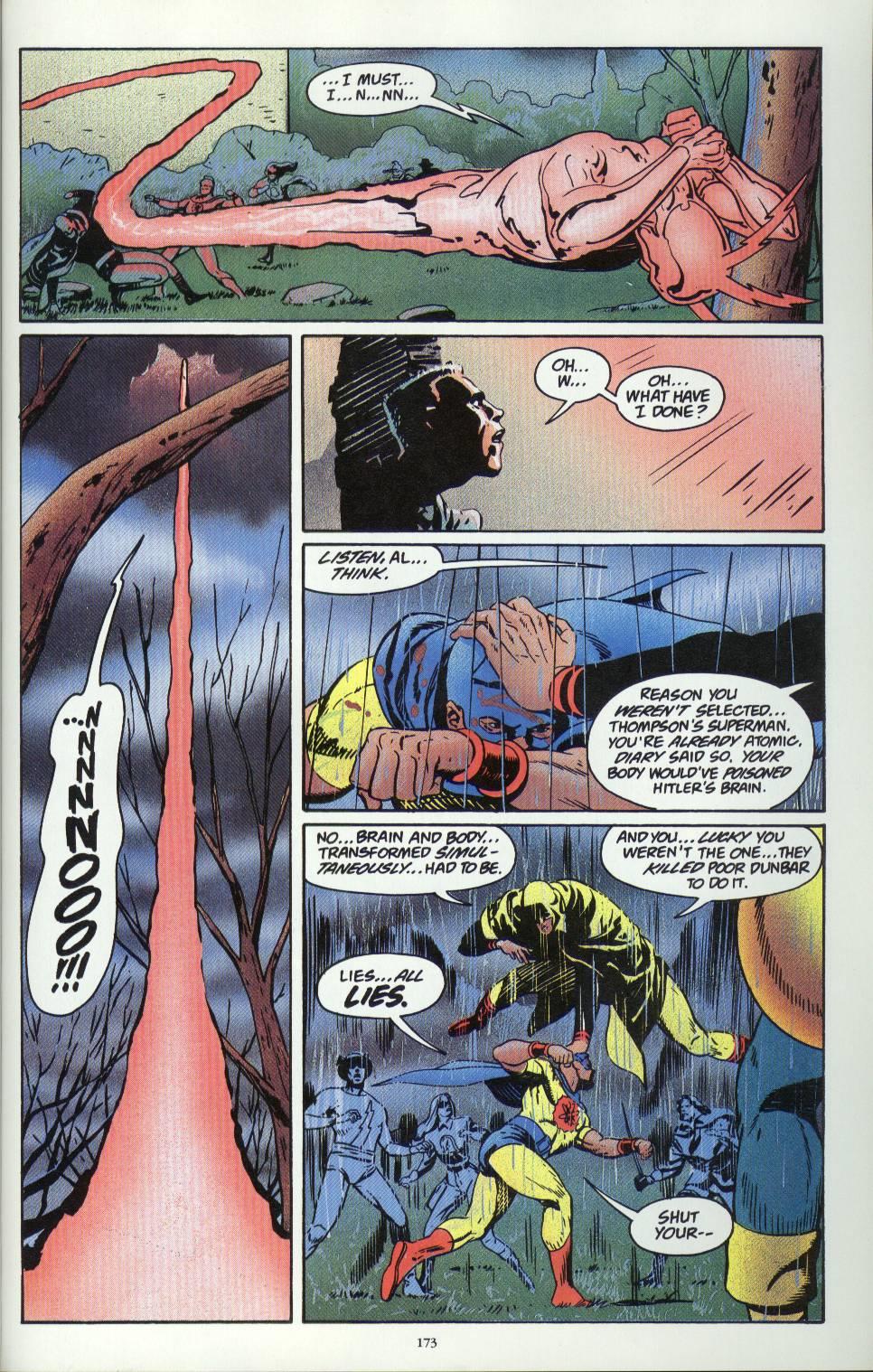 American culture is jazz and baseball, although I think we have to add in pro wrestling and superheroes as well. These things are inherently ours. We brought them to the world. I know folks would like to believe in a lot more of what she said, but, well, as an anarchist, I think it is a pipe dream. The state is the state, whether it is called The USA, the USSR, the UAE, or Uganda. We will see that even as our heroes expose the corruption of Thompson and how he is actually the Ultra-Humanite, that things will go along in a similar fashion, as the Joe McCarthy of this Earth rises to fill the vacuum Thompson leaves. He will engage in the same red-baiting that Thompson did, just as McCarthy did on our Earth. No nation, regardless of the ideals it purports to espouse, is immune from the power mongers and the need for the elites to maintain the status quo at the expense of the non-elite.
