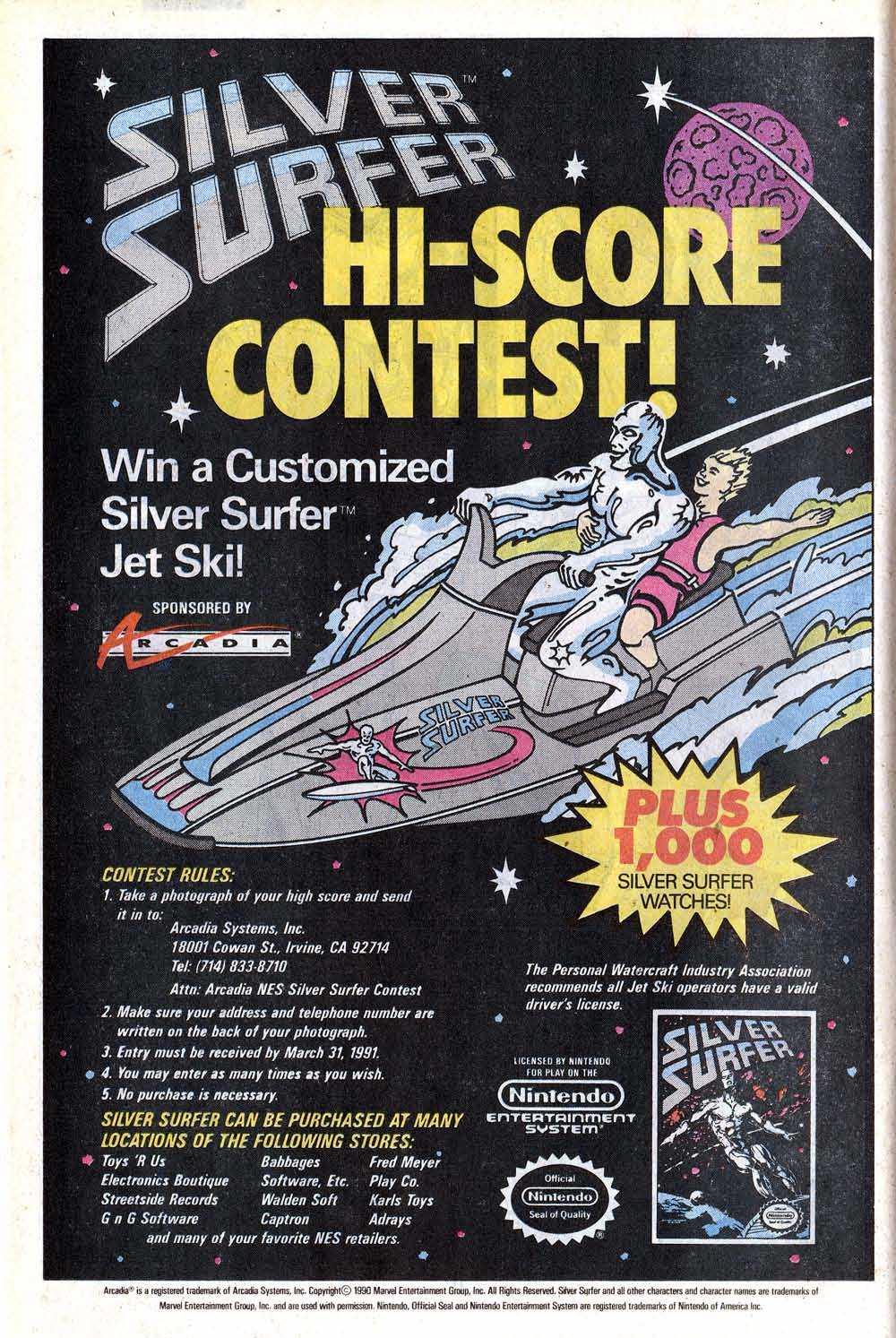 I should have won this; I deserve to be flying through space with the Silver Surfer on this awesome jet ski, not that kid. I do have to admit that he is having a ton of fun!