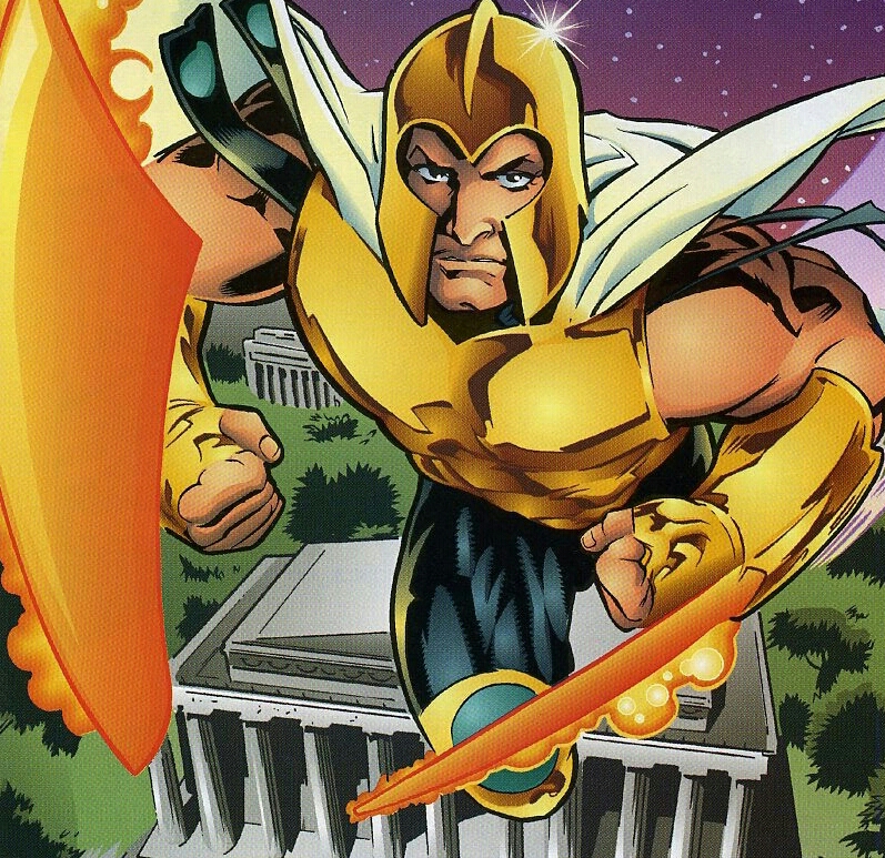 We begin our story as the Alpha Centurion has decided to leave Metropolis and strike out on his own. He has chosen to look into possibly serving as the protector of Washington D.C. (Yeah. Great place for a superhero to find some crime to fight. Of course, the biggest criminals are most likely employed in high offices!) As he looks down upon our nation’s capitol, he suddenly finds himself under attack as an energy blast hits him in the chest! It doesn’t take long for his hidden assailant to make herself known. She calls herself Ephemera and she fancies herself the keeper of history. It seems that she has just stolen important documents from the national archives and believes the Alpha Centurion was sent to stop her!