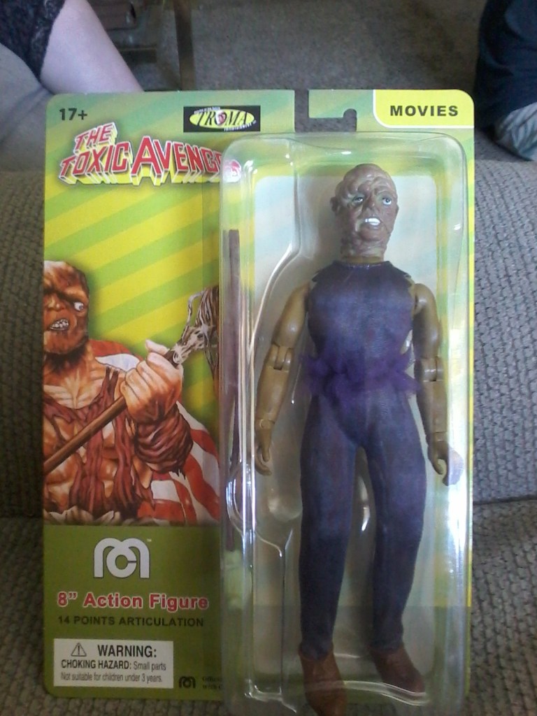 What’s hideously deformed, smells of toxic waste, and wears a ragged pink tutu? Yo mama! Ha! I kill myself sometimes! Ahem. Seriously though. If you answered, “The Toxic Avenger”, you’d be right on the money. The Toxic Avenger was created in 1984 as a black comedy/horror/superhero film for Troma Entertainment. Though the movie was low-budget and highly ignored upon it’s release the following year, it is now considered to be a cult classic. It spawned three sequels, a comic series by Marvel, and even a cartoon series, “The Toxic Crusaders”. That’s just to name a few of it’s major accomplishments. I first saw Toxie at home, on a rented VHS tape, when I was just a little boy. (And I turned out to be a completely well-adjusted individual. Kinda.) I’ve watched and re-watched it over and over again since and a large movie poster even adorned my bedroom wall. He was a large part of my childhood and is thusly held in high regard in my heart to this very day. That said, on with the story…..