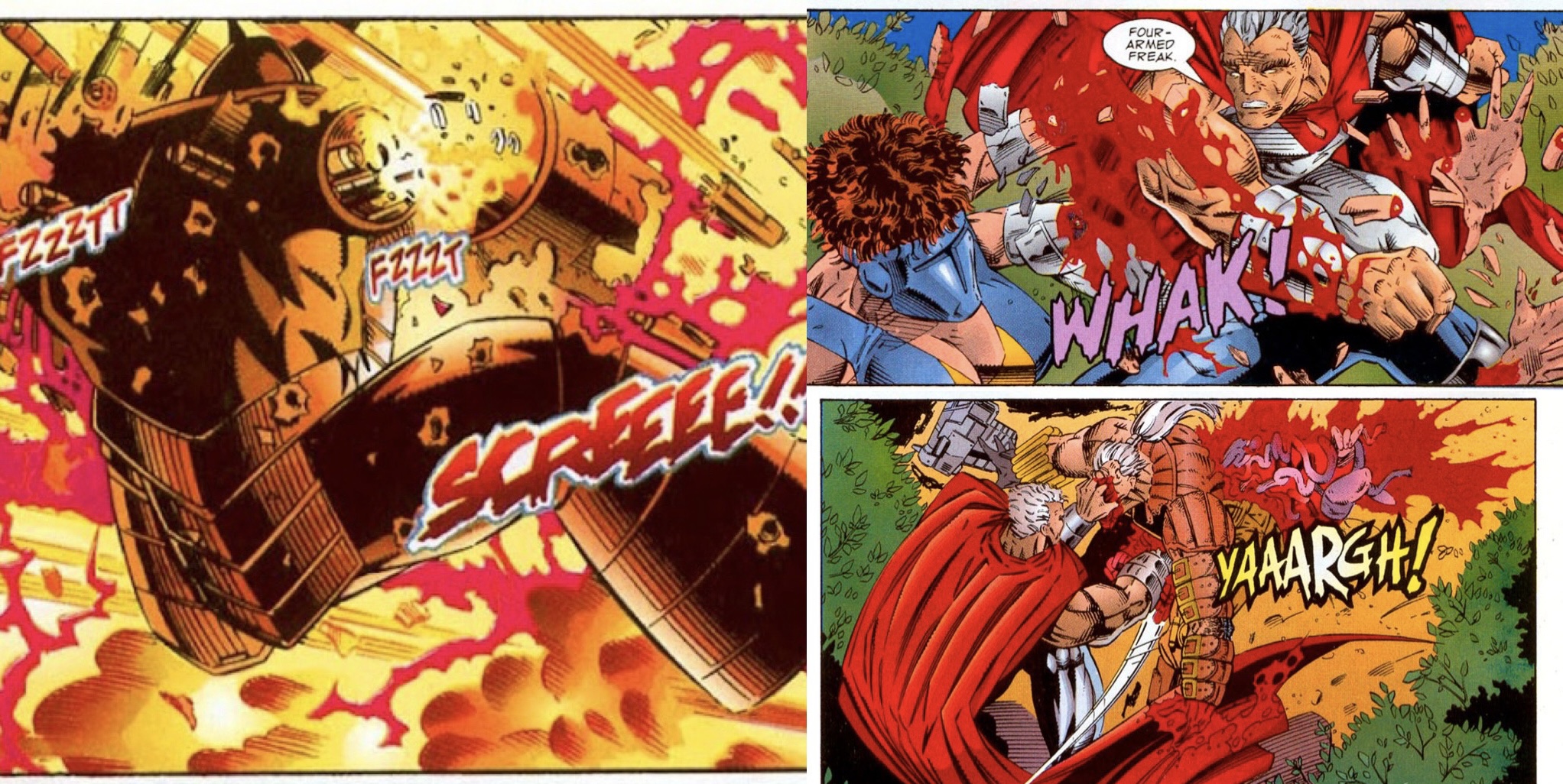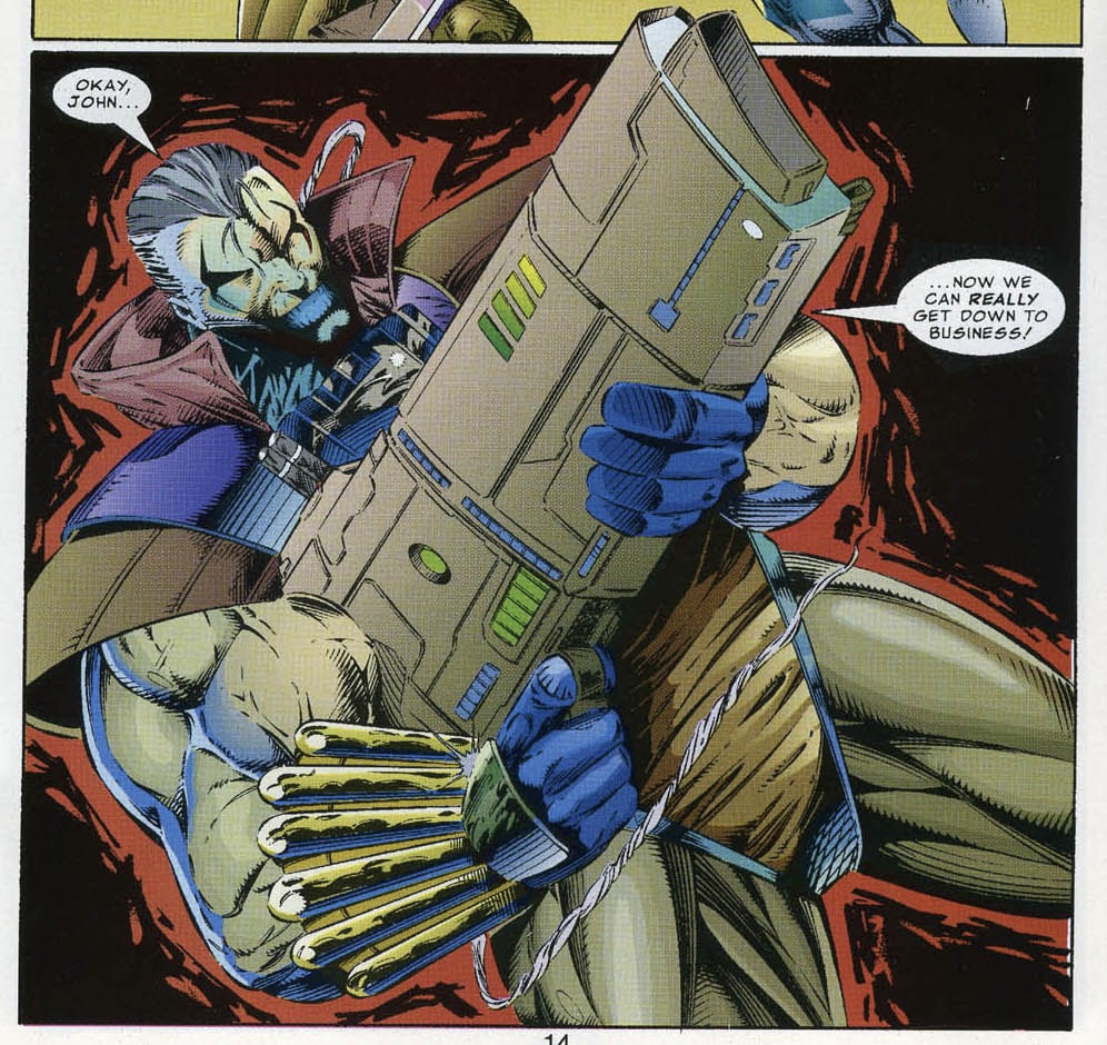 Penciller Dan Fraga is at his most Liefeld-cloney here (not a complaint!). It also gave us this image, which I will never forget.
