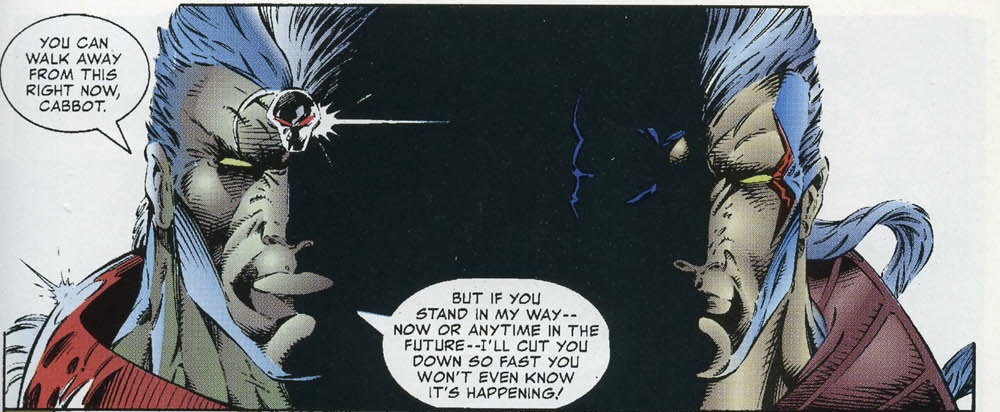Battlestone eventually gets Cabbot on the ropes, but rather than kill him, gives him the option of a truce. As long as Bloodstrike stays out of Brigade’s business, Stone will keep what he knows about all the government’s dirty secrets to himself. Cabbot agrees and the whole mess comes to an abrupt end.