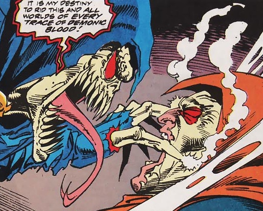 Now, let’s dive into my personal favorite antagonist in the entire series, Thrillkill! Thrillkill is an entity summoned by Don Carbone’s estranged daughter, Tina, with a single mission: to eliminate Don Carbone. Up until Thrillkill’s introduction, the story had elements akin to a Jean Claude Van-Damme action thriller—mafia, yakuza, and potential nuclear catastrophes. However, Thrillkill flips the script. This entity has connections to Pandora’s Box and is obsessed with the gore it has reveled in throughout its existence, to the point where it can’t stop talking about it. Alec’s showdown with Thrillkill unfolds in issues four and five, culminating in one of my favorite moments from the book when Alec slashes Thrillkill’s throat enough to sever its vocal cords, yet Thrillkill WILL NOT STOP TRYING TO SPEAK.