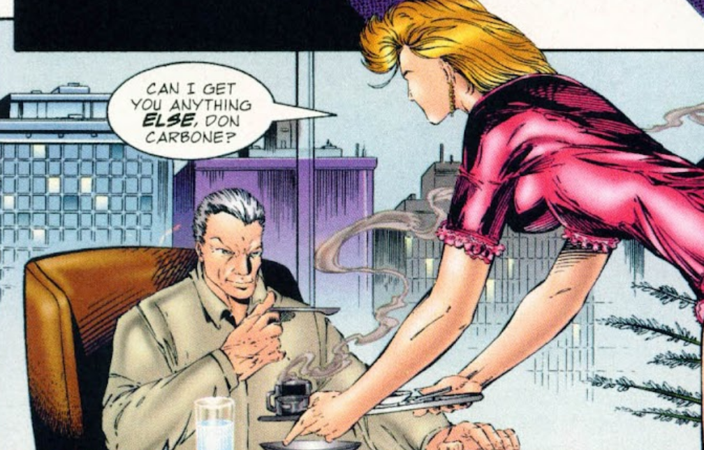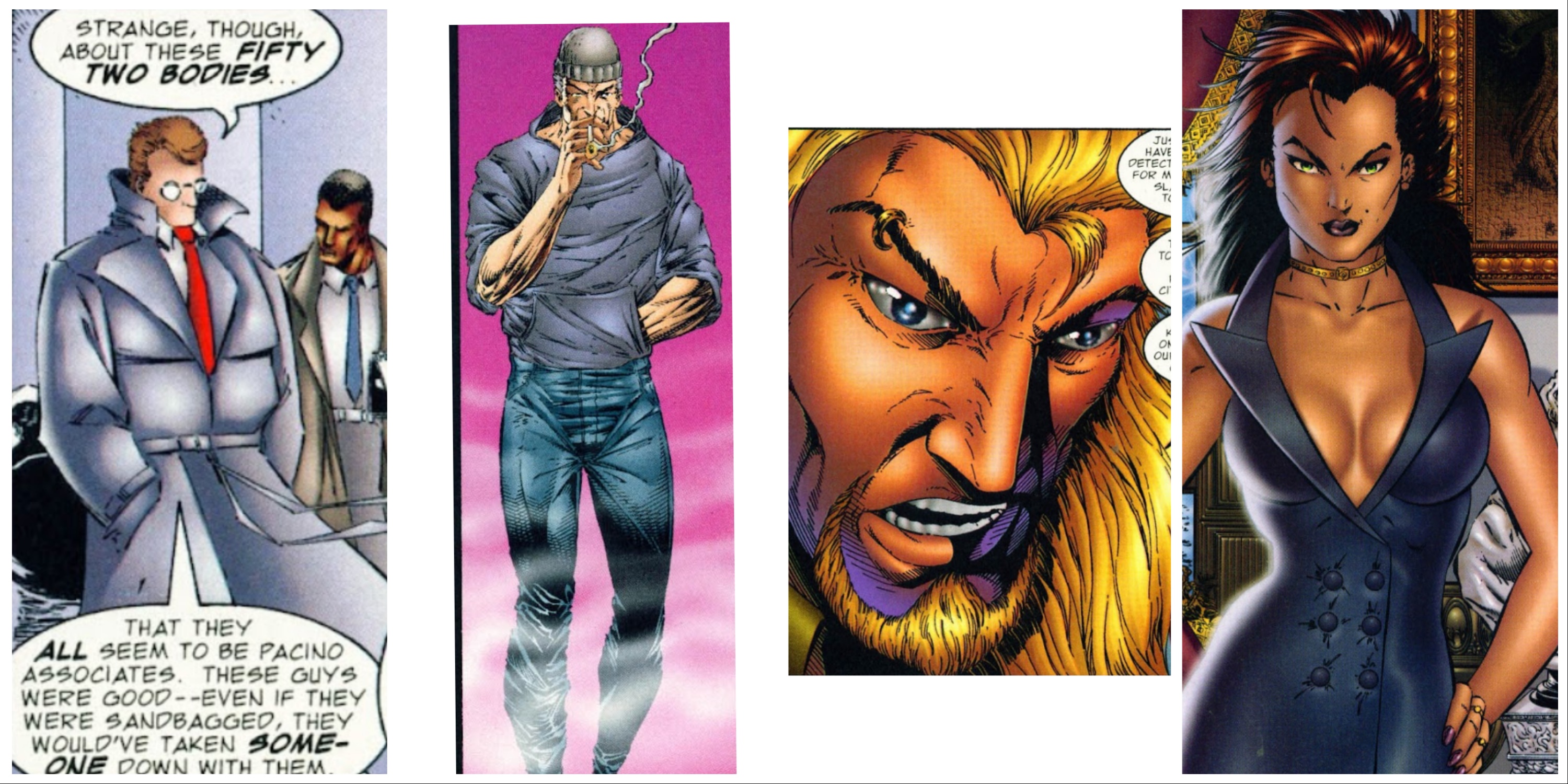 In this 6-issue series, space is limited for multiple antagonists, but Alec encounters several foes. Let’s start with Don Carbone, the mob boss, who plays a significant role. Carbone was approached by some US Military personnel to acquire black-market nukes. When Alec learns about this deal, he contemplates leaving the Carbone family, setting off a chain of events that results in Carbone ordering the hit on him.