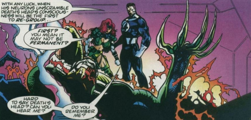 Welcome back, fellow Unspokenites to part three of my look back at Marvel’s “Death’s Head II” miniseries! So, what’re your thoughts on the story so far? I’d really enjoy your comments. When we last left our “hero”, Minion/Death’s Head had found a loophole out of assassinating poor Mr. Fantastic, and then moved on to a time and place unknown to us. So, let’s get back to our boy. Shall we? (Like you had a choice! Ha! Please don’t go away…..whimper.)