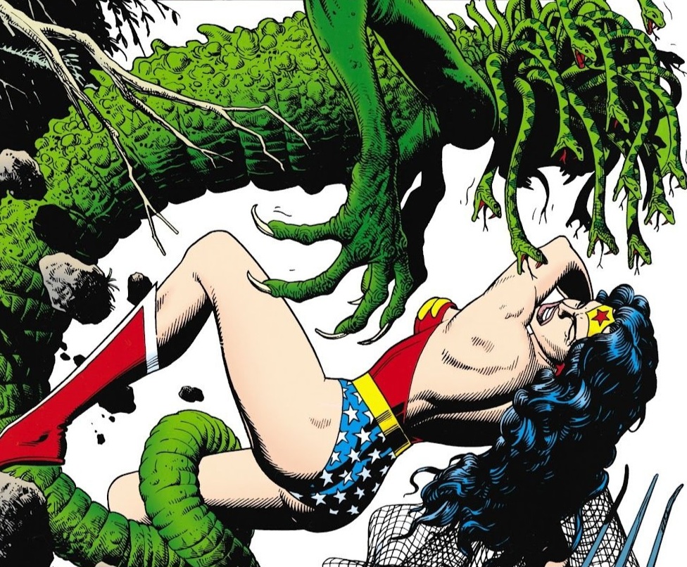 She sees a large cliff and uses her new instruments to scale it with ease. But upon reaching the top, what she finds horrifies the Amazonian Princess to her core! Other Amazons…..turned to stone! Medusa! And just as the name hits her, she hears the terrifying snake hiss from behind! But Diana is hardly a fool. She closes her eyes and waits. And just as Medusa begins to coil her large tale around the Princess, Diana uses the pitchfork as a type of lever and catapults both of them off of the cliff top! As an enraged Medusa falls to her certain doom, Diana snags her net from earlier around a close tree limb! She pulls herself to safety and begins to run like she’s never run before! (Run, Forrest! Run!) She passes the others with ease but runs neck with Artemis! But then, tragedy strikes as Diana unexpectedly trips and falls, mere steps before the finish line! That’s it! Artemis is now the new Wonder Woman!