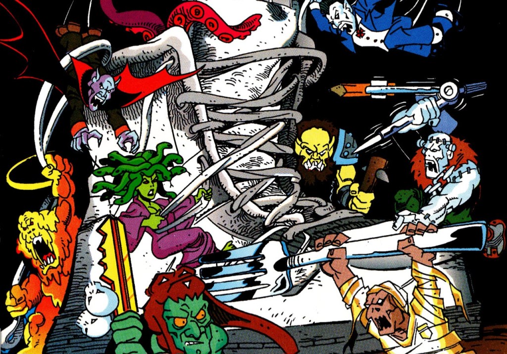 I defy any of you to best me at the “Monster in my Pocket” game on the original Nintendo! Come at me, bro! That said, the “Monster in my Pocket” miniature figures began appearing in toy and department stores in 1990. They were colorful, detailed, and just plain awesome! They would continue to be produced until 1992 by Matchbox. For those of you that don’t know, these small rubber figurines depicted fantastic monsters ranging from folklore to mythology throughout the world. But enough with the history lesson. Let’s begin our look back at the first issue of their short-lived but amazing comic book series…..