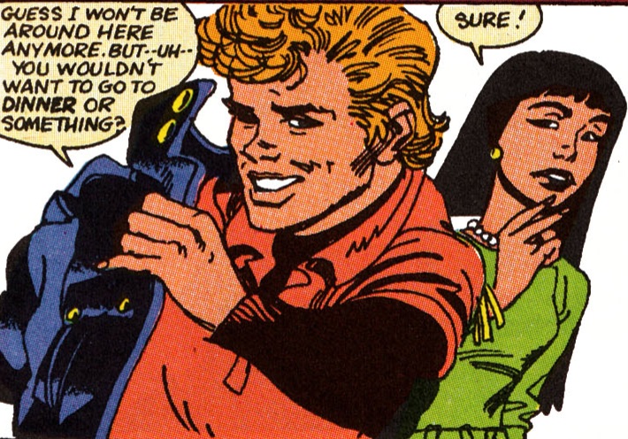 But, in order to not only save his leader, but the others as well, Frankenstein’s Monster forcibly removes the Vampire from the woman’s person! The only damage done is a slit in her stockings from sharp vampiric fingernails. Regaining his senses, Vampire orders the monsters to take cover. He spies a jacket hanging from a rack in the clothing store they’re now in and orders them into the chest pocket. Unfortunately, this is the same jacket that’s purchased by a young teen moments later. The teen, Jack, flirts with the sales girl while she rings up his purchase. The monsters listen on while he shyly asks the girl out on a date. The girl, Tina, accepts and Jack puts on the jacket before he even leaves the store. He heads home soon after, a huge smile on his face. When Jack reaches his house, he rushes in the door, barely acknowledging his parents or his younger brother, Tom, on the way up the stairs to his bedroom. He absently tosses the garment over his desk chair as he prepares for his night out. He sits back then and hears complaints emanating from his new jacket’s pocket! (Watch out, Jack! There’s monsters in the pocket! See what I did there? You know? Like the toyline name…..I’m so underappreciated…..)