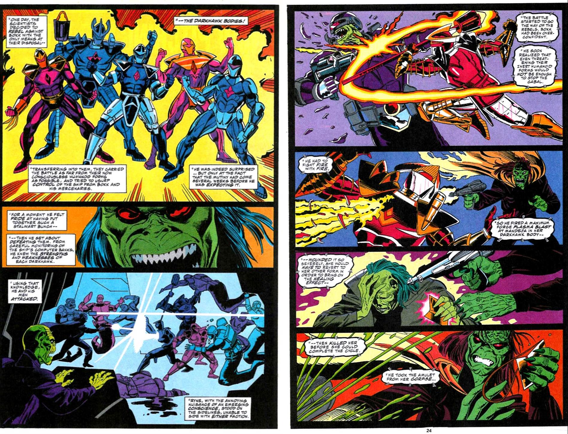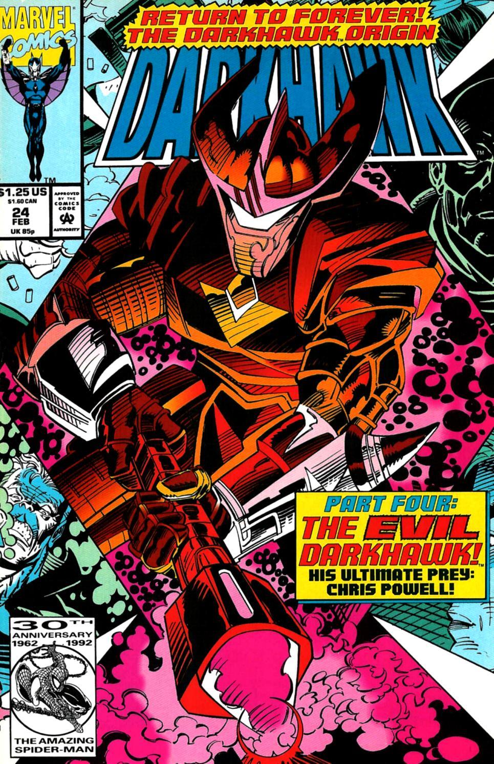 Darkhawk’s origin was always shrouded in mystery.  That was part of his charm for lots of folks, but a mystery can only go on for so long, and so we have the “Return to Forever” storyline that featured his origin and an issue with Ghost Rider, who has naught to do with Darkhawk’s origin, but hey, he looks cool as hell and he was appearing in everything else in the 90’s,  so why not?