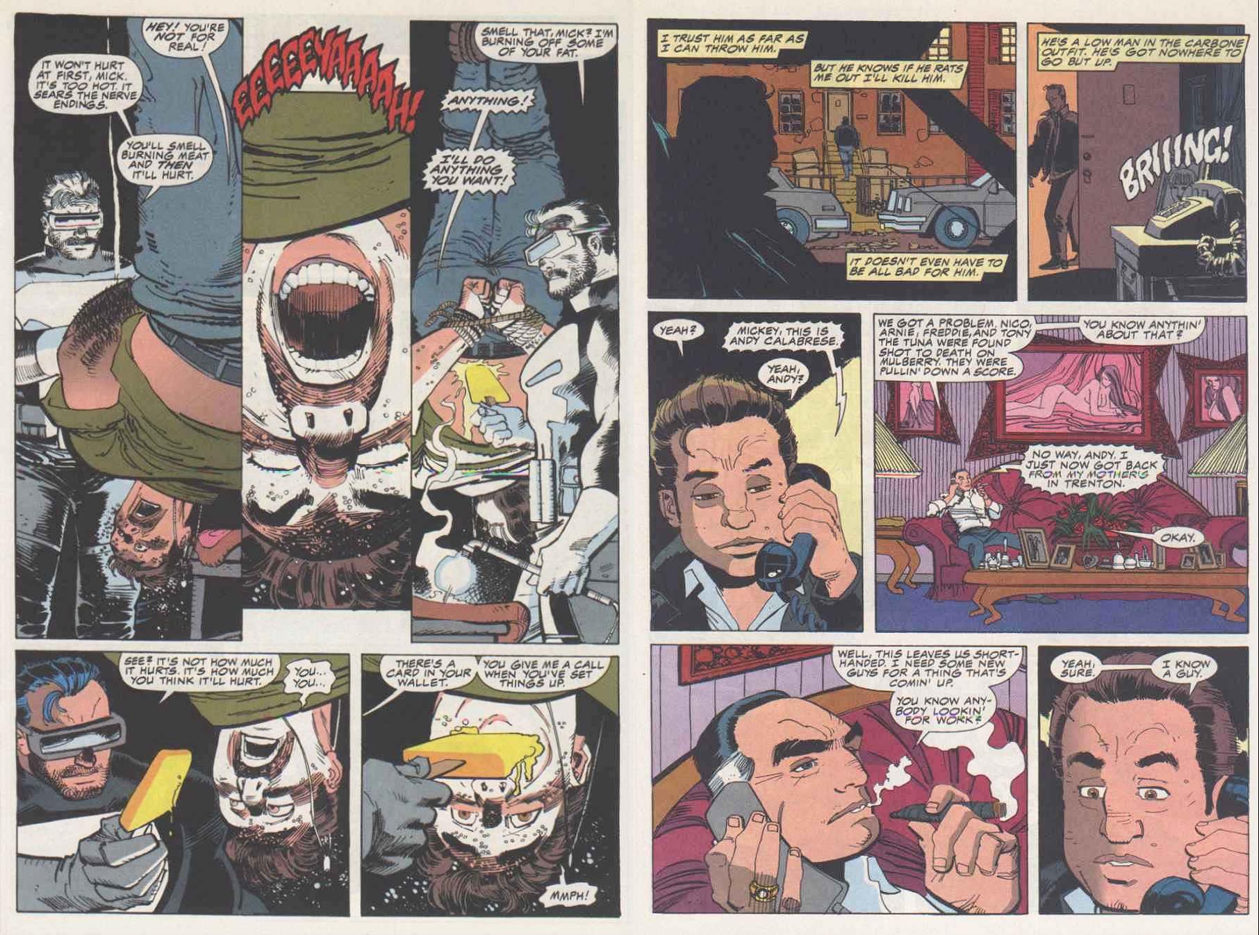 Mickey continues to play tough guy, and so Punisher, in one of the more famous scenes from Punisher lore, decided to make Mickey cooperate the old-fashioned way by asking nicely while using a blowtorch on him.