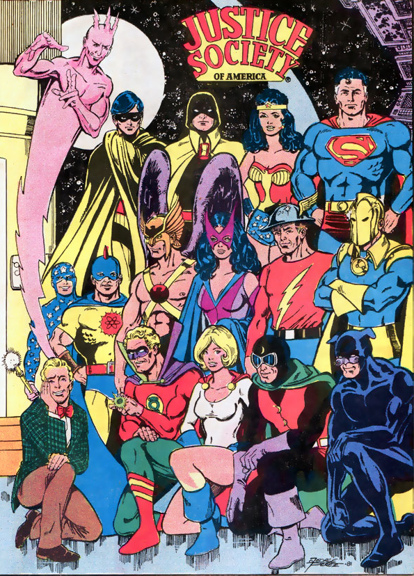 Today we will be looking at some awesome but random images of the Justice Society of America! I am also including the cover of the first appearance of Power Girl because I love her and the Super Squad! I wish they would have stayed together longer, just her, Robin and the Star-Spangled Kid. Alas, they did not, although Infinity Inc. did feature two of them prominently. As if I wasn’t already being good enough to you, I found a sweet pin-up of the JSA by my favorite artist of all time, (except Kirby), George Perez!