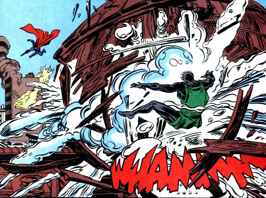 The battle then takes to the skies! Back and forth fists are thrown that could topple mountains! But Jor-El simply doesn’t have the fighting experience that his son does. Superman throws him through a nearby water tower. And before he can fully get back to his feet, Clark unleashes the fullest extent of his heat vision! Jor-El falls, unconscious at last! Superman arrived at the building in question in a flash. He punched through the thick steel of the wall and flew in. Lex Luthor sat nonchalantly in a lawn chair on the other side! In his hand was a drink with a little umbrella leaning lazily inside. Superman went for the proper panel to release the plague. Nothing. Luthor had rewritten the circuit board! (Does anyone get what side this guy’s on? I feel like I’m trying to do algebra here!)