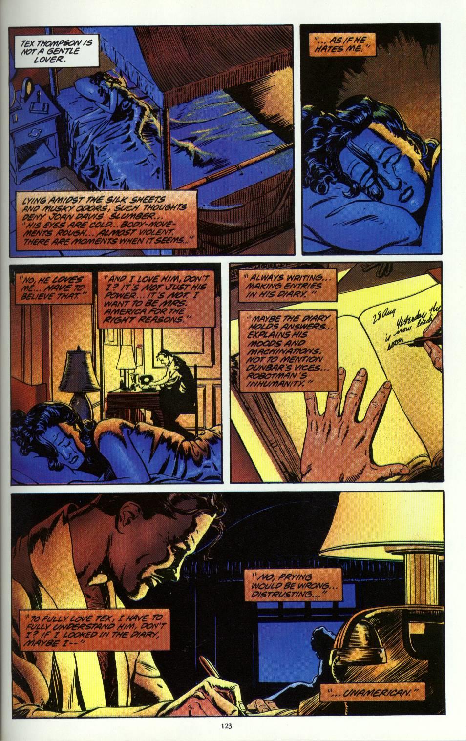 Still the Tigress and Captain Triumph struggle against Robotman, searching for a way to honor their fallen friend, Miss America. Captain Triumph also struggles against the ghost of his brother, and whether he wins or loses said struggle, is really up to the reader. One thing is for sure, he wins the struggle with Robotman…
