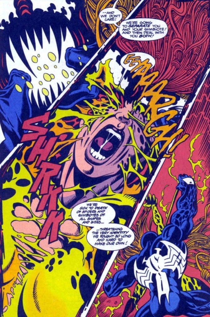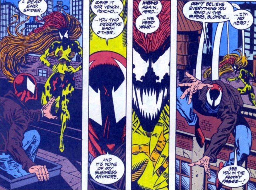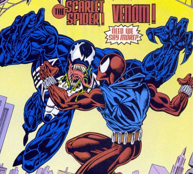 Well, here we are! The epic finale in the slugfest between the fledgling hero, now known as the Scarlet Spider, and the veteran villain, Venom! Will Ben Reilly succeed where so many other heroes have failed? Will he defeat the Lethal Protector once and for all? (And will I finish this article in or out of the bathroom due to stomach issues? Stay tuned!)